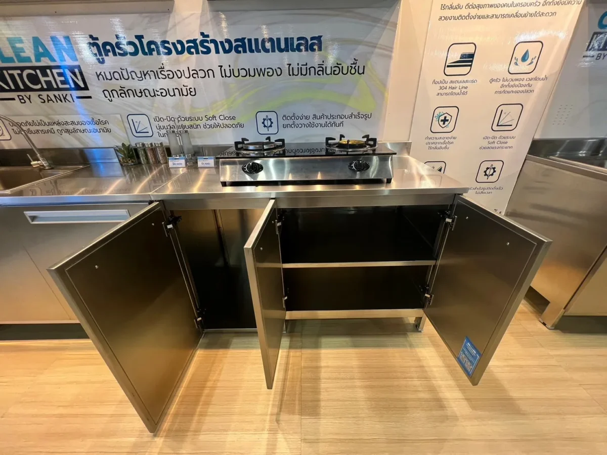 – หน้าท็อป หน้าบาน แผ่นข้าง และ ขา เป็นสแตนเลส 304 Hair Line